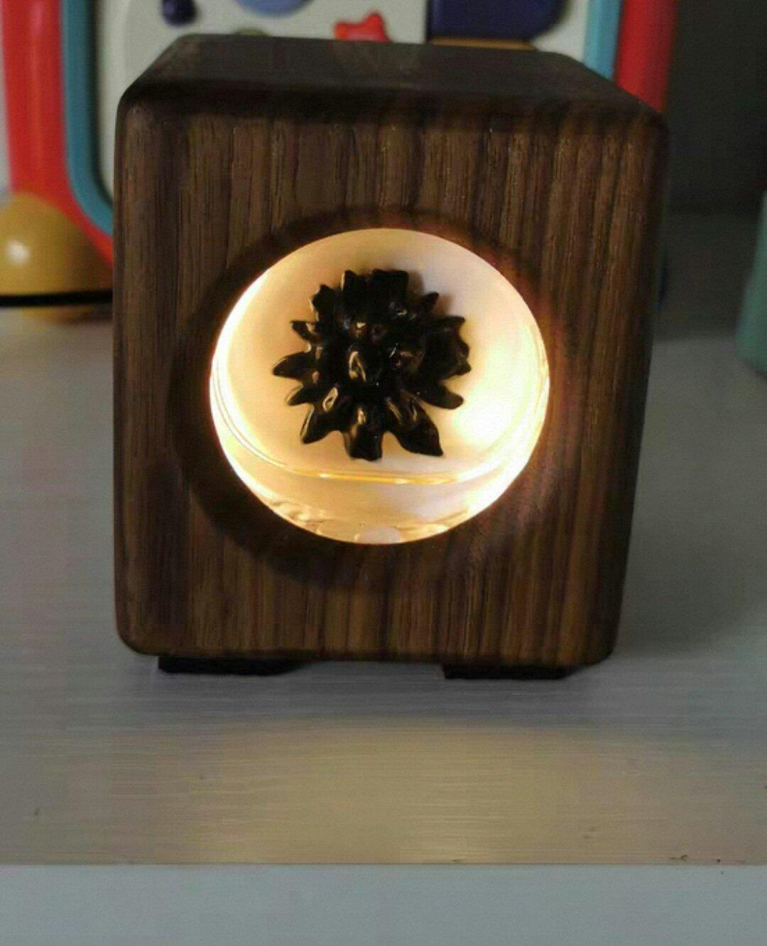 • Handcrafted Wooden Design – Available in Walnut, Beech, and Maple, each lamp is crafted from solid natural wood, polished to highlight the unique grain of the material. No two pieces are alike, giving every unit a distinct, artisanal character.