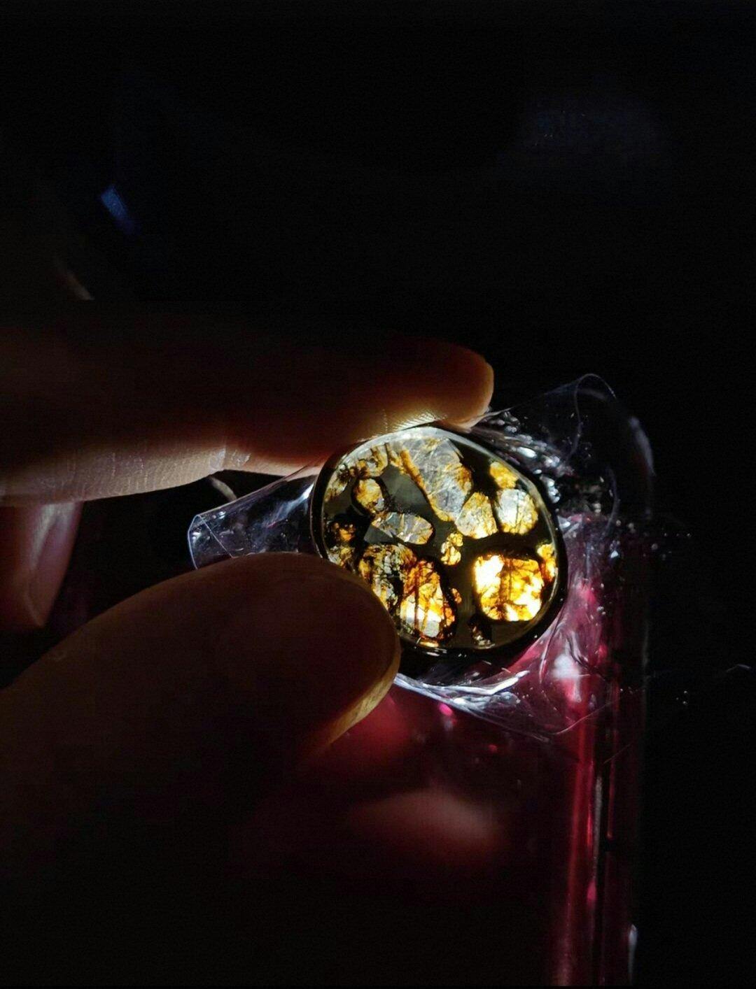 • Material: Genuine Sericho pallasite meteorite + 925 sterling silver base