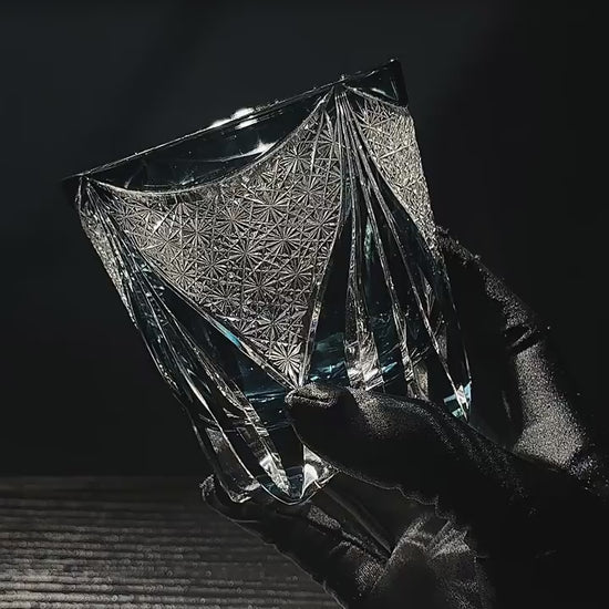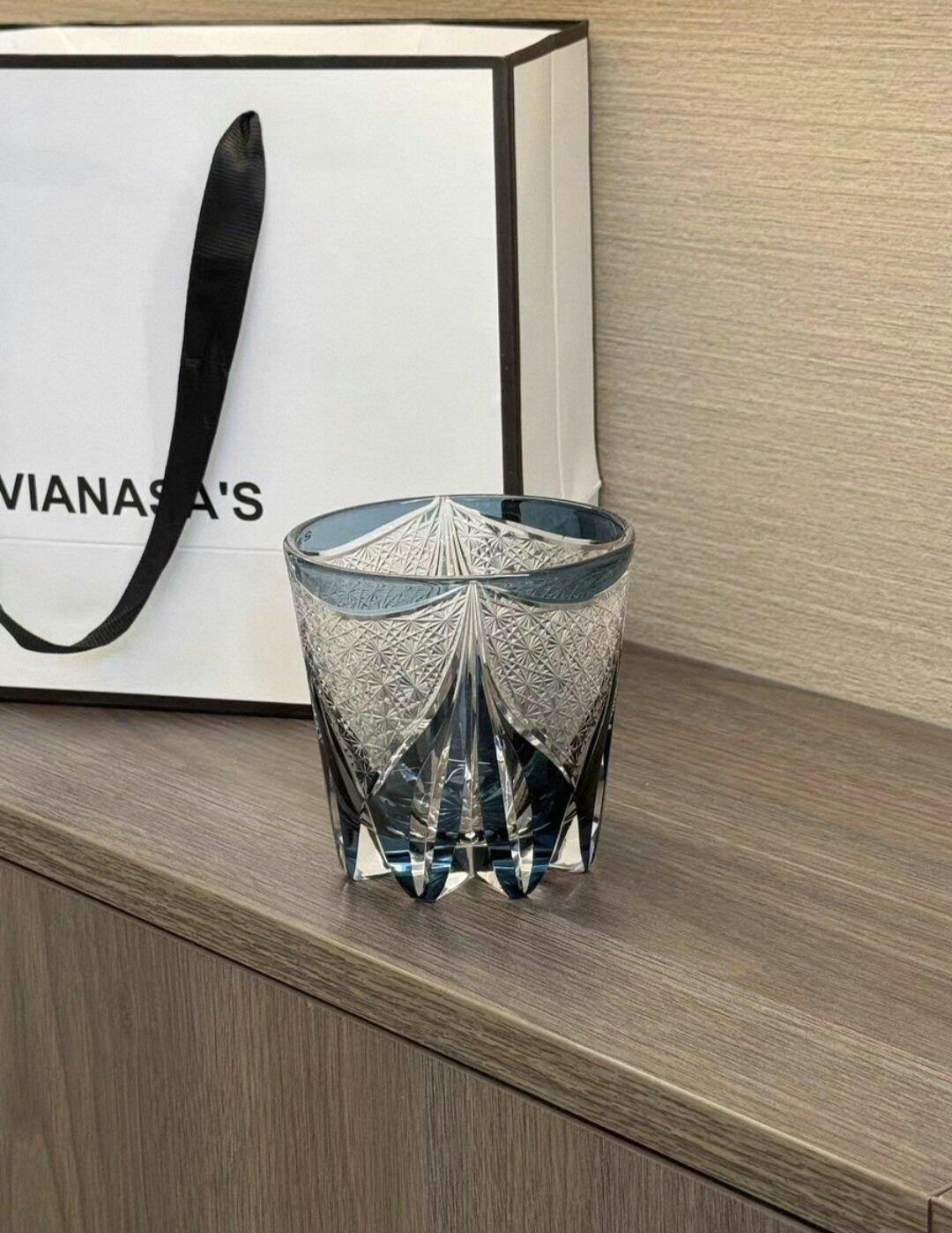 Experience the elegance of Japanese artistry with our Edo Blue Ice Crystal Glass. Each piece is meticulously hand-cut and polished through a six-step artisanal process, bringing out the brilliance of deep blue crystal and intricate Edo-style patterns.
