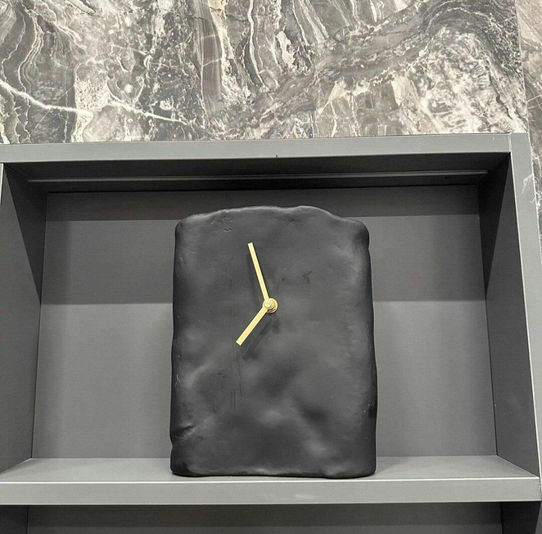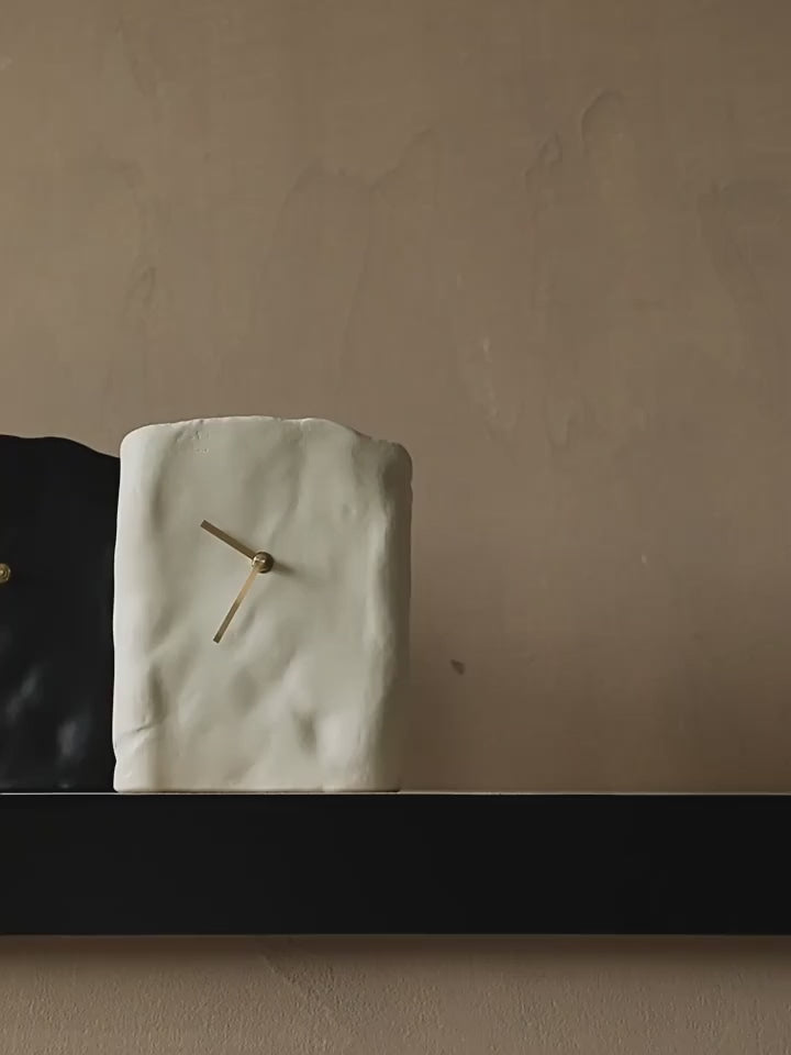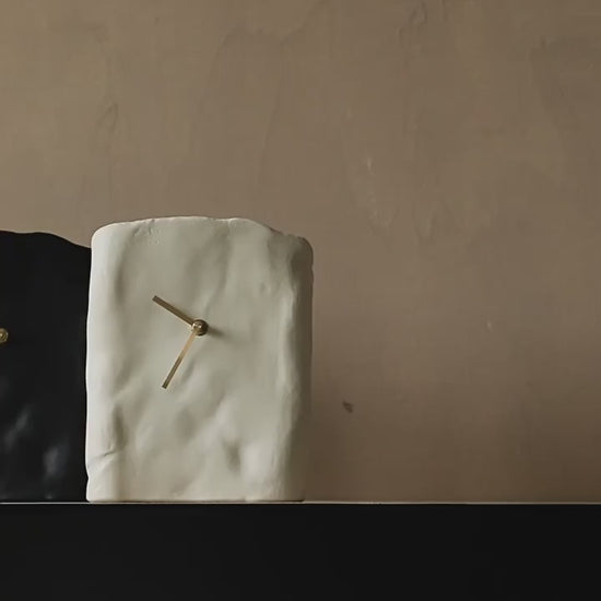 Each clock is crafted with organic resin and finished with a textured, hand-sculpted surface that embraces natural imperfections.